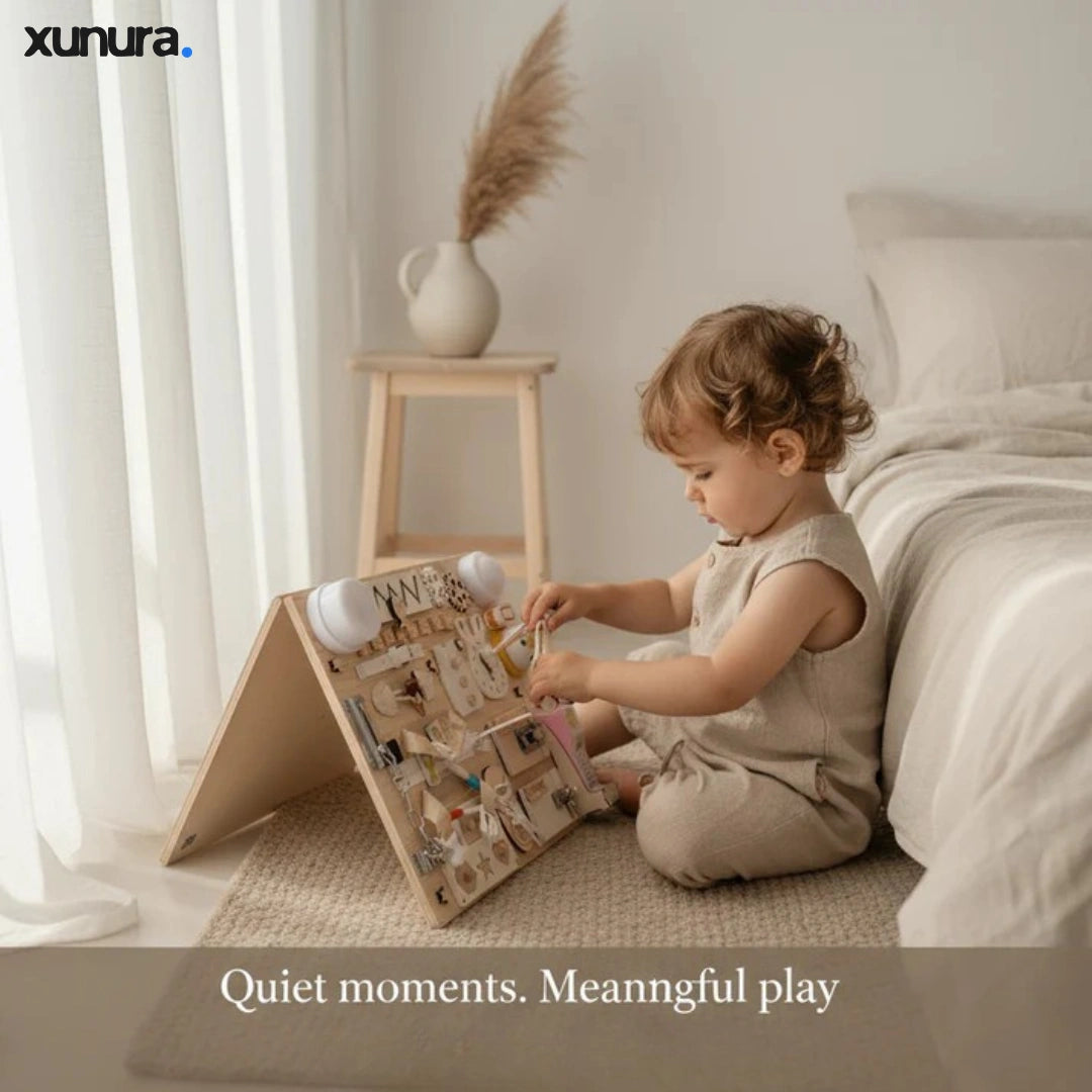 Designed to replace screen time with meaningful, hands-on play, the Xunura™ Montessori Busy Board helps toddlers build focus, coordination, and confidence through real interactions — not flashing lights.